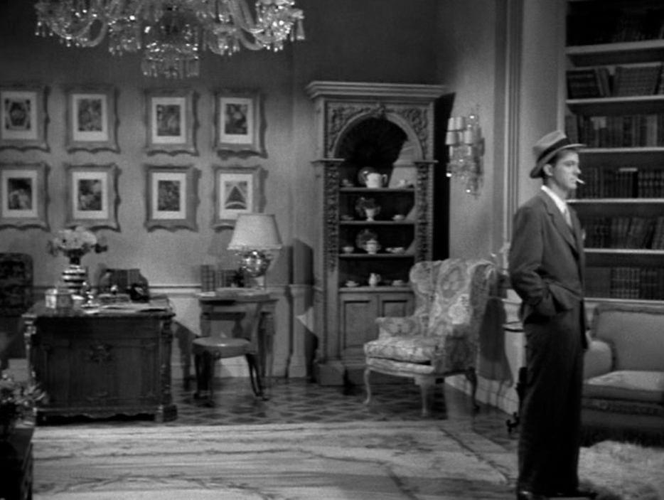 • I have no idea, except for the fact that all the glass and cristal displayed in this cabinet are precious and fragile – which is probably how Waldo sees Laura. The way McPherson abruptly grabs the flask reveals him as the potential “thief” who’s going to steal Waldo’s most precious “possession”.